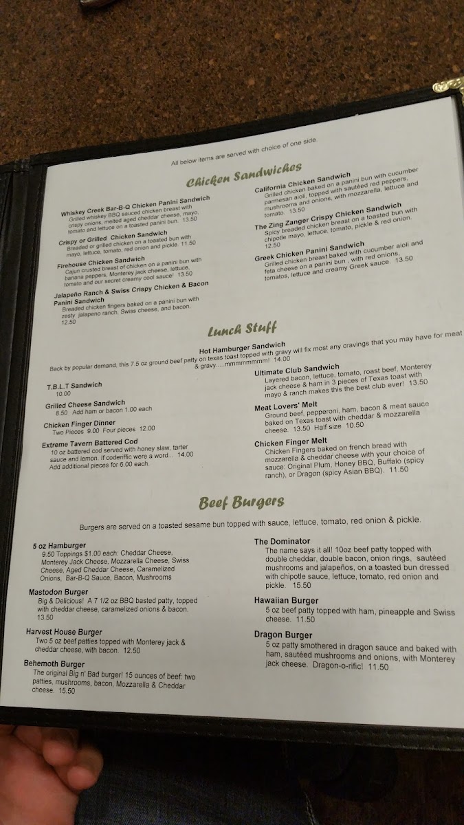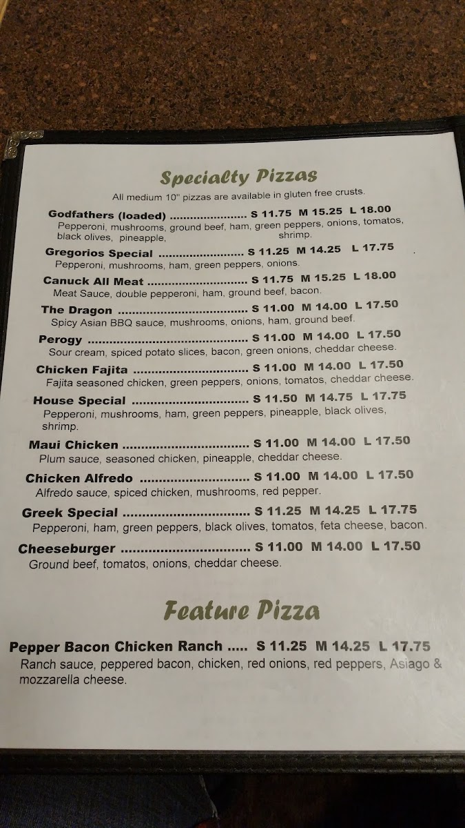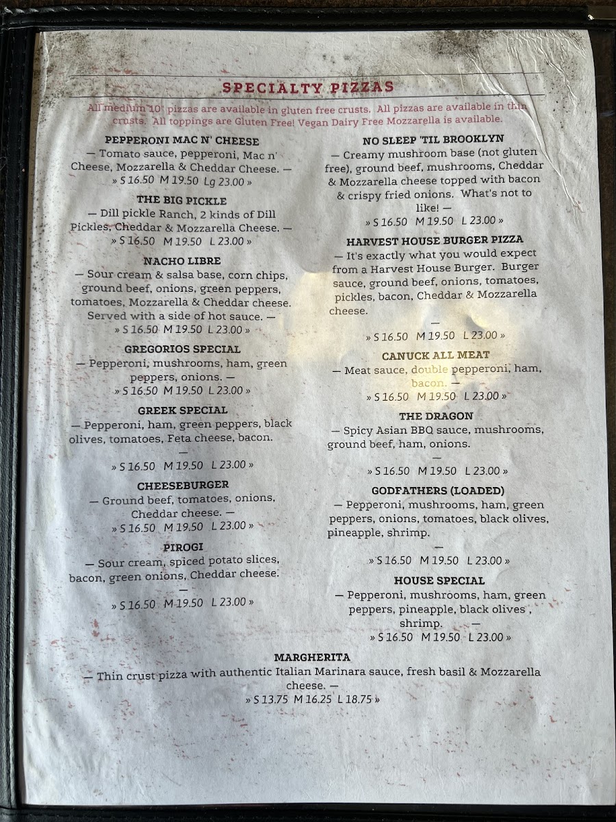 Harvest House delivers a menu that balances comfort with creativity, starting with the Today's Special: BLT Chicken Cheddar Burger, a hearty choice that embodies classic flavors with a twist. Pizza enthusiasts are well catered to with the specialty selections, including the indulgent Godfathers, the savory Gregorios Special, the meaty Canuck All Meat, the fiery The Dragon, and the unique Perogy, each offering a distinct profile for diners seeking variety. For those looking for something featured, the Feature Pizza: Pepper Bacon Chicken Ranch stands out as a crowd-pleaser, combining familiar favorites in a satisfying, flavorful combination. Overall, the menu at Harvest House showcases a thoughtful mix of signature burgers and inventive pizzas, promising something memorable for every palate.